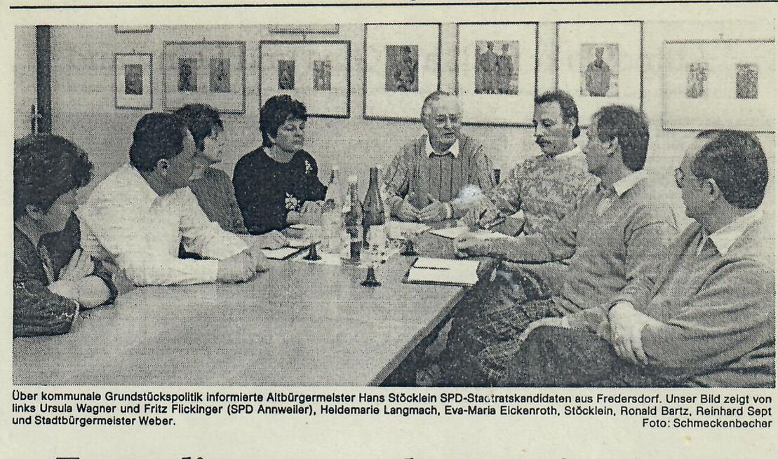 SPD Mitglieder in Annweiler in Rheinland-Pfalz. Beitrag im Pfälzer Tageblatt vom 21.04.1990.