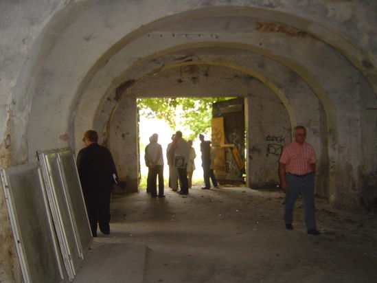 Die anwesenden SPD-Vertreter Regina Boßdorf und Volker Heiermann wiesen darauf hin, dass hier ein kleines Juwel verborgen liegt. Das nebenstehende Foto kann nur einen schwachen Eindruck von der Atmosphäre geben, die vor allem in der ehemaligen Brennerei vorhanden ist. Aber auch diese ist teilweise einsturzgefährdet. Und nach einer nach mehrmaligem Nachfragen bekannt gegebenen sehr groben Kostenschätzung würde allein der Bauteil „ehemaliger Kuhstall“ ca. 3 Millionen Euro kosten. Und daneben müsste auch noch das zugehörige Grundstück von der Gemeinde käuflich erworben werden.